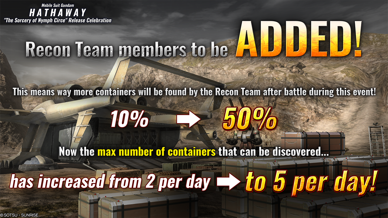- During the period, container discovering chance after the battle will be increased from “10%” to “50%” during the period.