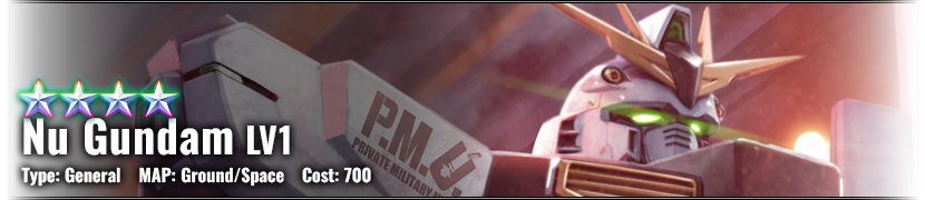 - 6th day: Nu Gundam LV1 (General unit, ground/space use, cost: 700)