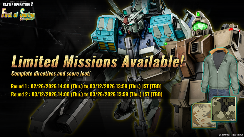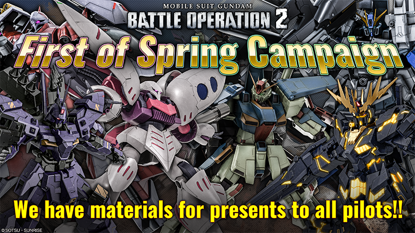 - During the campaign, pilots who login to the game will obtain COST 750 MSs such as ZZ Gundam LV3 and Banshee LV2, also weapons are coming together as presents!