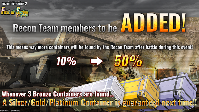 - ※Pilot who has already found 4 or above bronze containers before the campaign will discover silver/gold/platinum container straightly after the update.