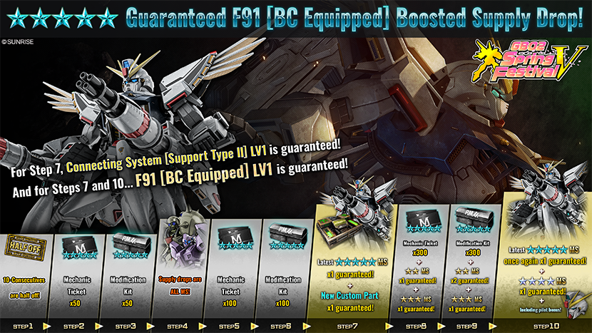 - ・STEP 10 (30 tokens): Another “F91 [BC Equipped] LV1” is guaranteed!!