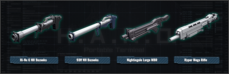 ・★★★ Hi-Nu G NH Bazooka LV2 ・★★★ 93ff NH Bazooka LV2 ・★★★ Nightingale Large MBR LV2 ・★★★ Hyper Mega Rifle LV2 -