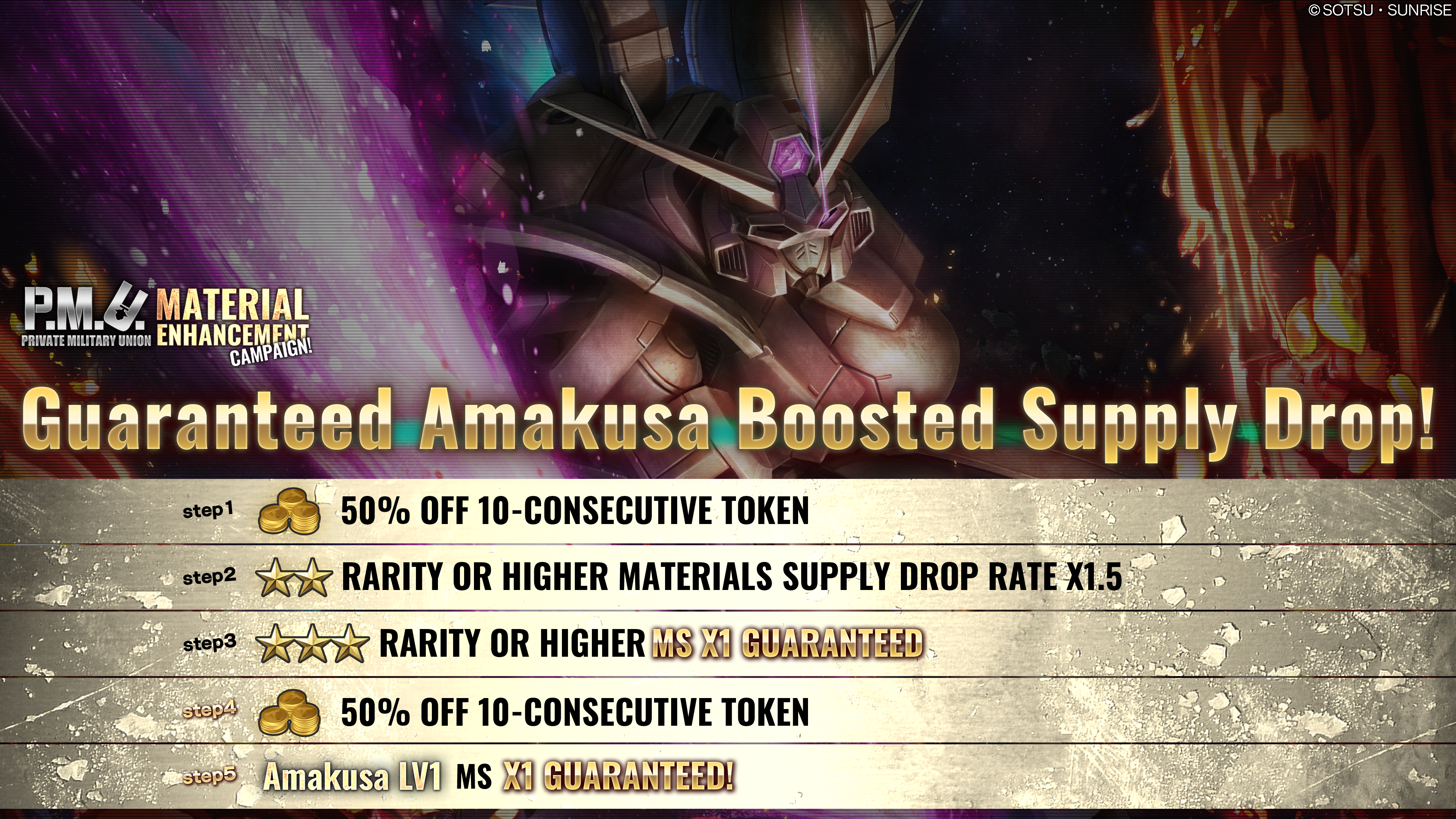 - ・STEP5 (30 Tokens): 1 Amakusa LV1 guaranteed!
