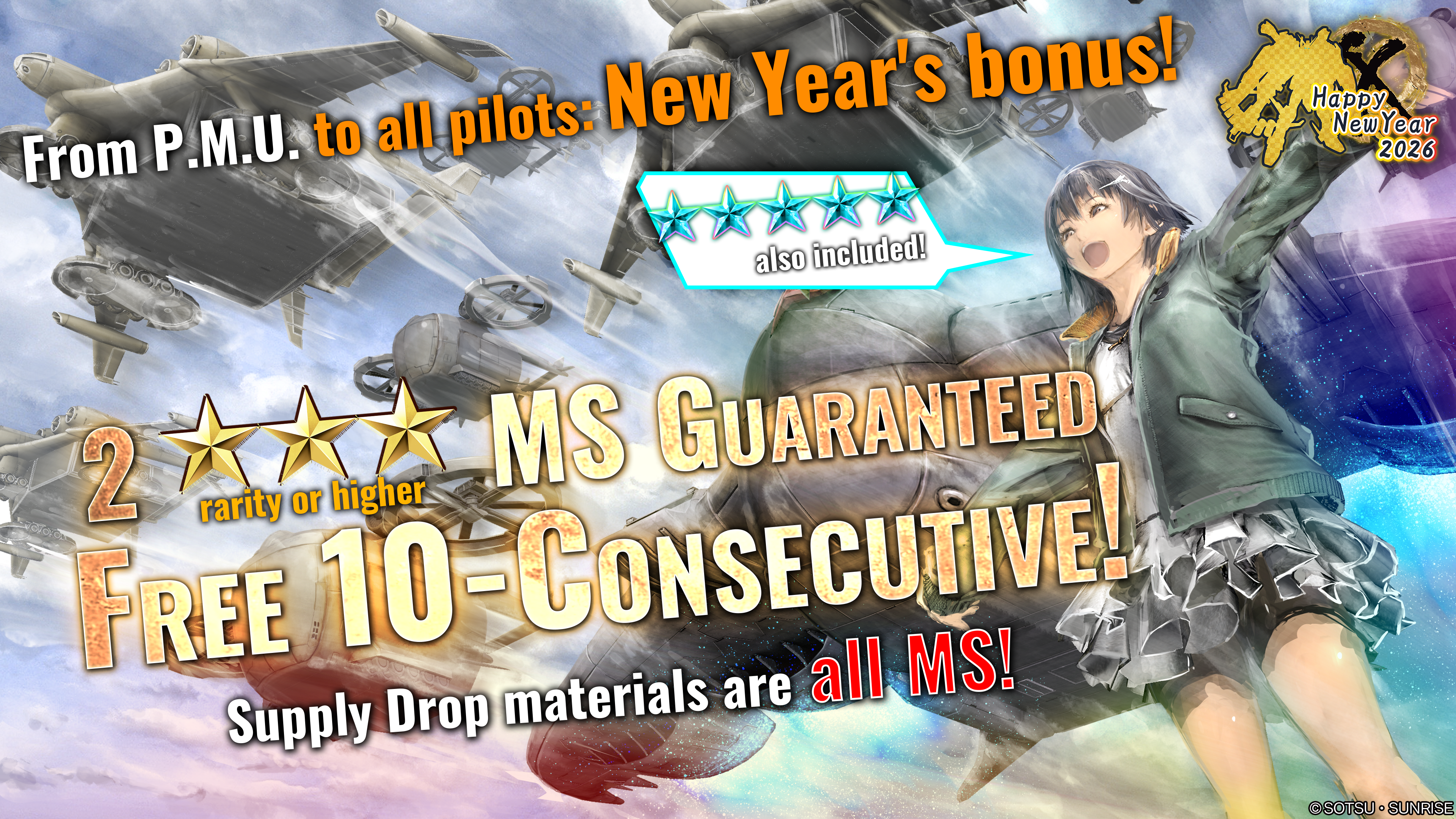 2 ★★★ rarity or higher MS Guaranteed Free 10-consecutive Supply Drop!