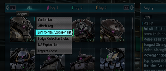 - ⇒ Extension skills were previously accessed under “Enhancement List”, but the name was unclear, so it has been renamed “Enhancement/Expansion List”.