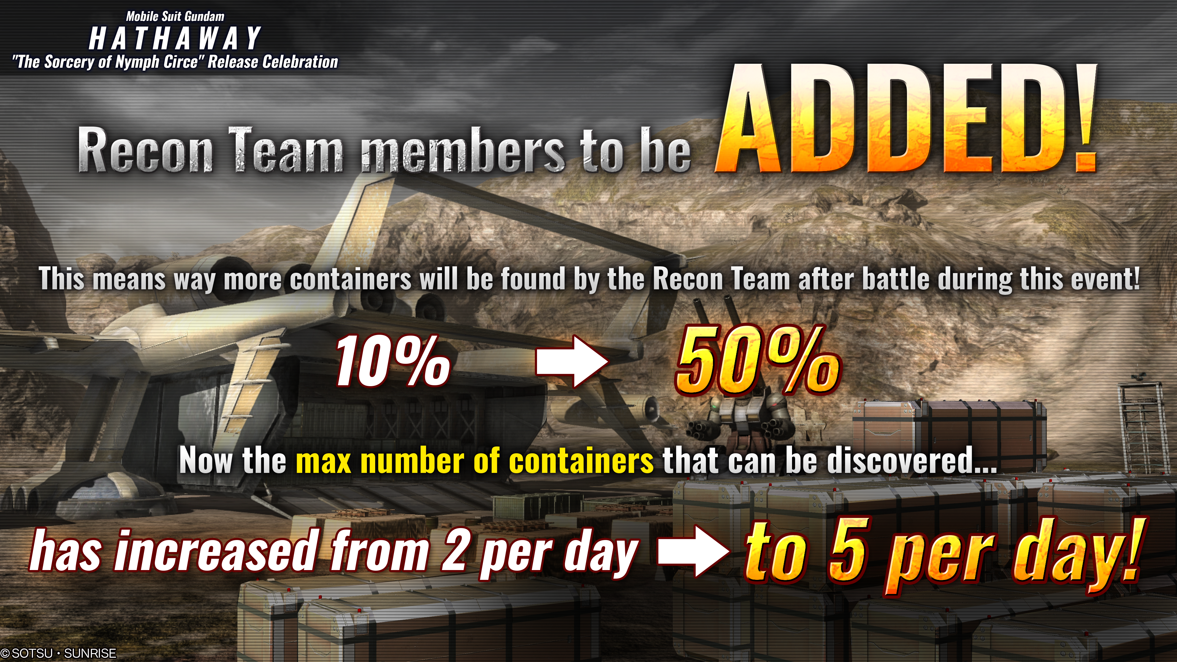 - During the period, container discovering chance after the battle will be increased from “10%” to “50%” during the period.