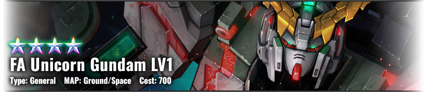 - 7th day: FA Unicorn Gundam LV1 (General unit, ground/space use, cost: 700)