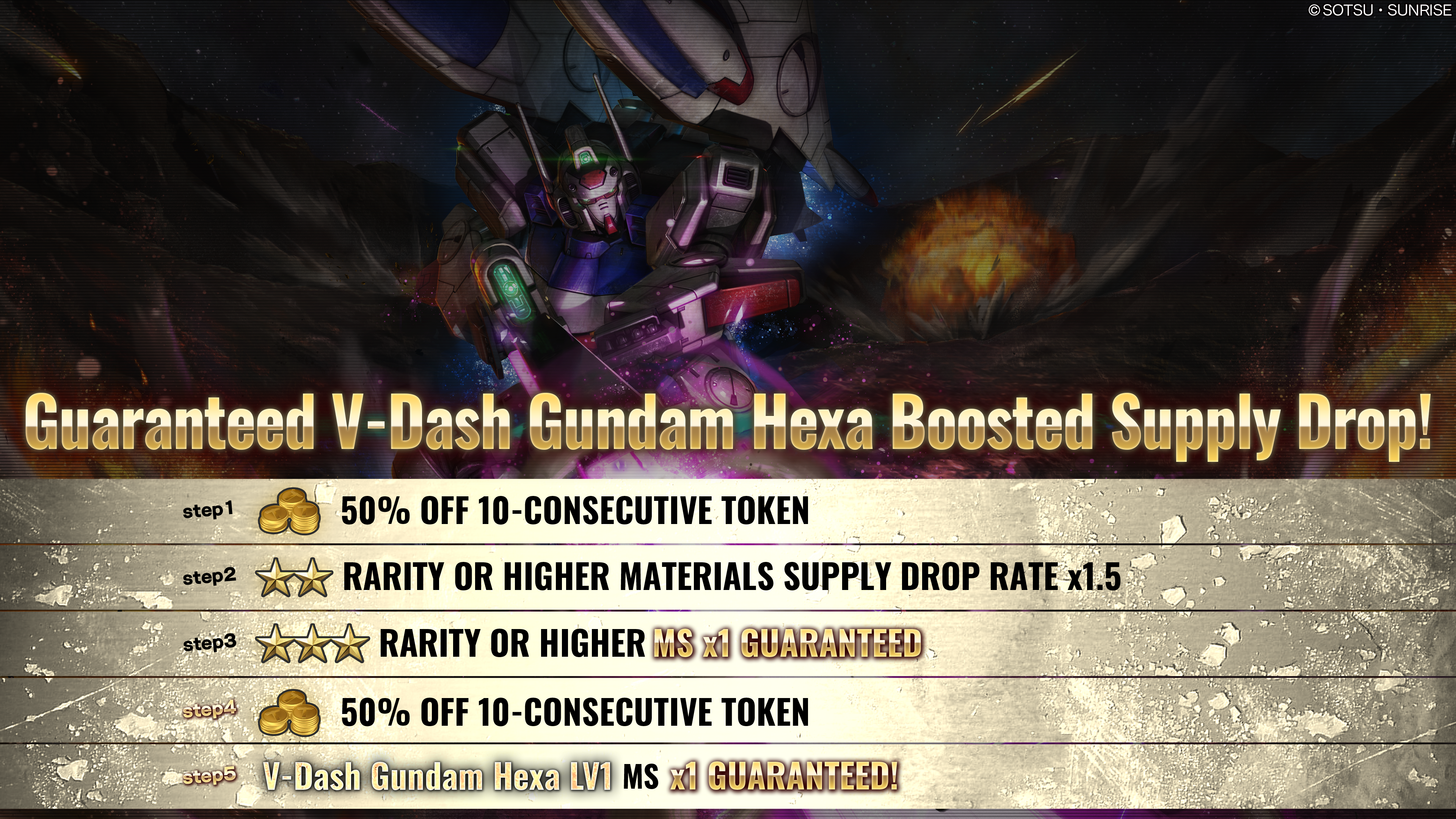 Starting from [PST] 02/04/2026 / [CET] 02/05/2026, V-Dash Gundam Hexa LV1 guaranteed STEP UP Supply Drop will begin.