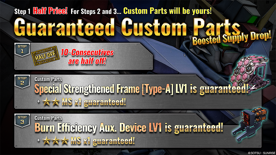 - ・STEP3(30 Tokens):1 out of 4 distinctively selected powerful! MS guaranteed! Plus “Superb Jegan LV1” MS x1 guaranteed!!