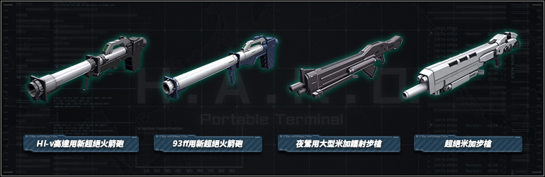 ・★★★ Hi-ν高達用新超絕火箭砲 LV2 ・★★★ 93ff用新超絕火箭砲 LV2 ・★★★ 夜鶯用大型米加光束步槍 LV2 ・★★★ 超絕米加步槍 LV2