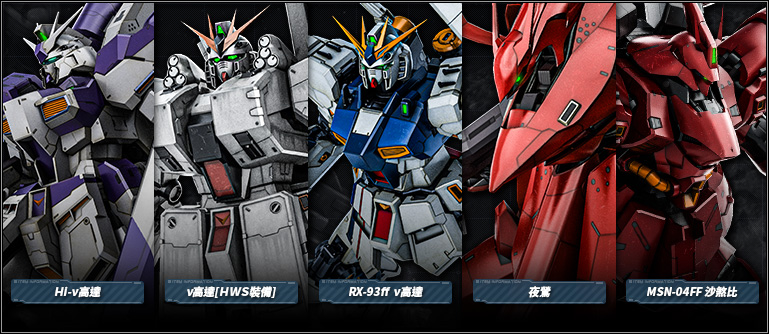 ・★★★★ Hi-ν高達 LV2 (泛用機、地上/宇宙兩用機型、成本值750) ・★★★★ ν高達[HWS装備] LV2 (支援機、地上/宇宙兩用機型、成本值750) ・★★★★ RX-93ff ν高達 LV2 (突擊機、地上/宇宙兩用機型、成本值750) ・★★★★ 夜鶯 LV2 (突擊機、地上/宇宙兩用機型、成本值750) ・★★★★ MSN-04FF 沙煞比 LV2 (支援機、地上/宇宙兩用機型、成本值750) -