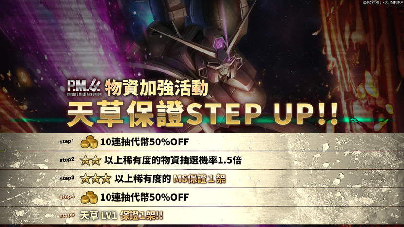 • ・STEP3(代幣30枚):★★★以上的MS保證1架!