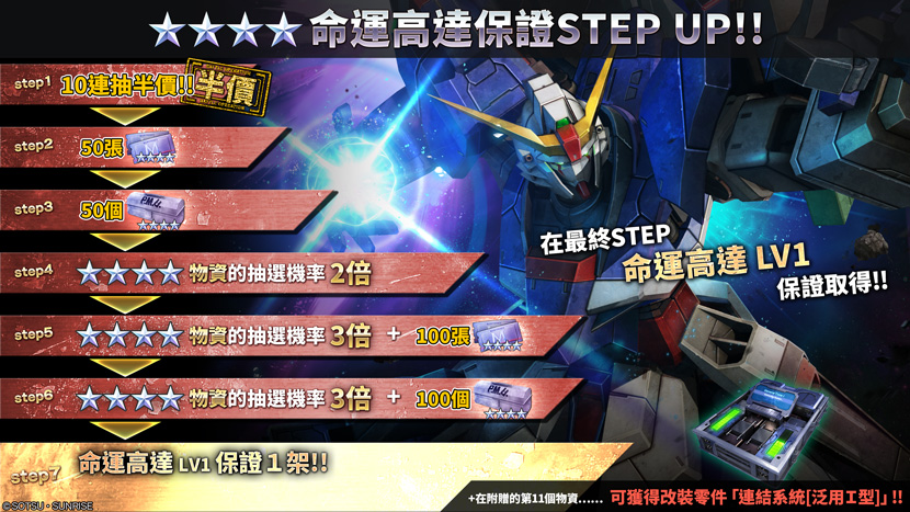 以及可獲得適用於命運高達改裝零件的STEP UP抽選配給。 - ◎命運高達保證STEP UP抽選配給