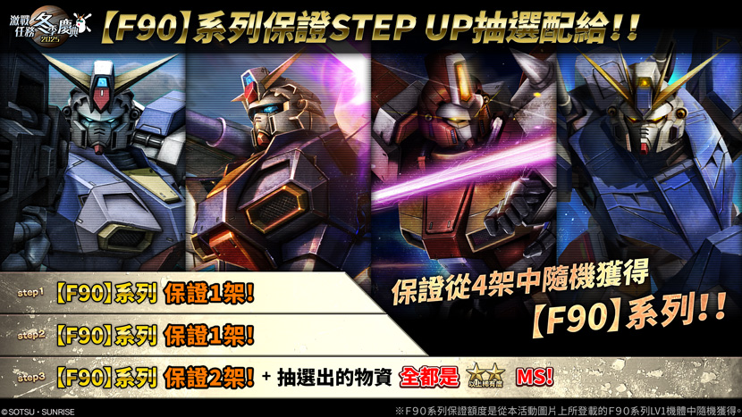 ・STEP3(代幣30枚):保證從4架【F90】系列中隨機獲得2架!+抽選出的物資全都是★★以上MS! -