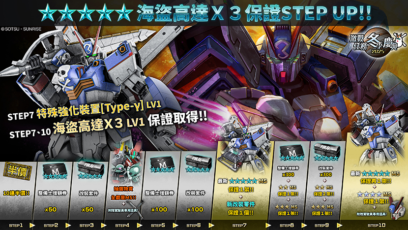 - ・STEP10(代幣30枚):「海盜高達X3 LV1」保證再1架!!