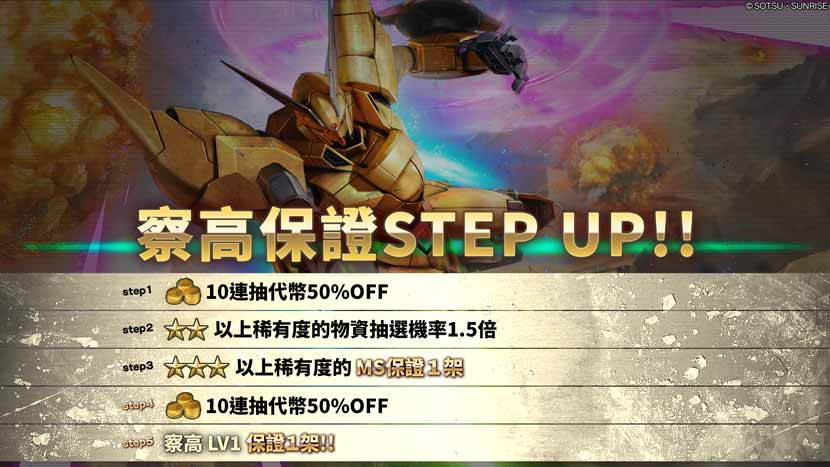 - ・STEP3(代幣30枚):★★★以上的MS保證1架!