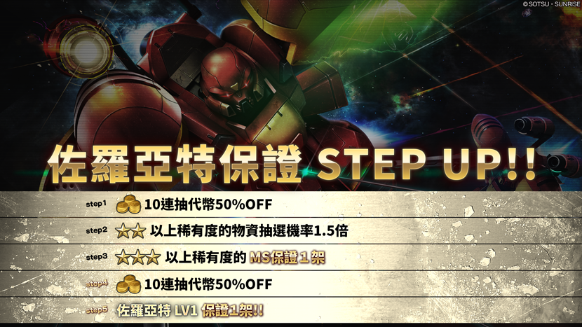- ・STEP3(代幣30枚):★★★以上的MS保證1架!