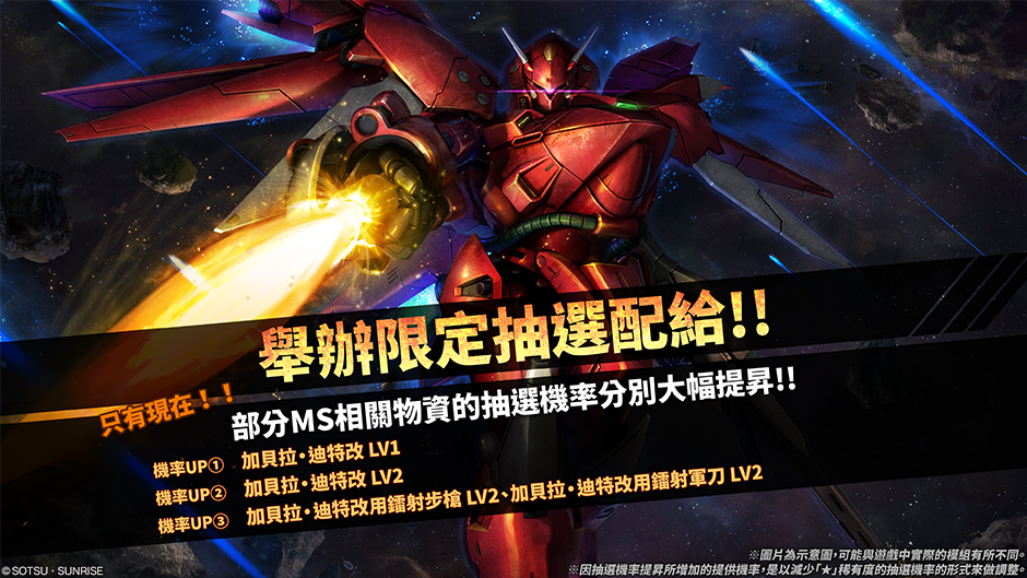 上圖新MS已更新至遊戲中,新抽選配給一覽請見下方列表。