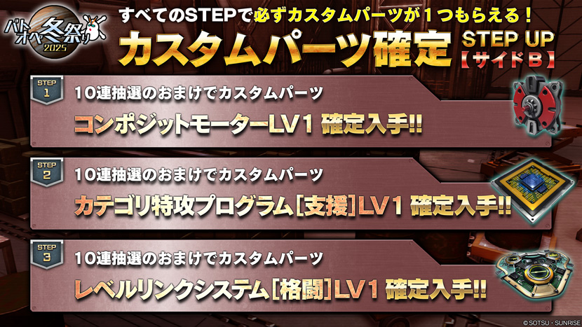 - 2025年12月25日(木)より、冬祭りキャンペーン③「第4弾STEP UP抽選配給【サイドB】」を開催いたします。