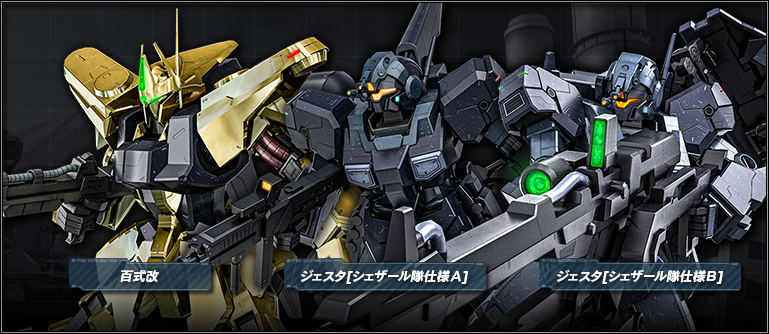 ・★★ ジェスタ[シェザール隊仕様A] LV3 (強襲、地上/宇宙両用、コスト750) ・★★ ジェスタ[シェザール隊仕様B] LV3 (支援、地上/宇宙両用、コスト750) ・★★ 百式改 LV4 (汎用、地上/宇宙両用、コスト750) -