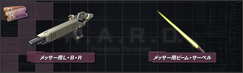 また、過去にリサイクル窓口に追加済みの「メッサー用L・B・R LV2」及び「メッサー用ビーム・サーベル LV2」も必ずリサイクル窓口に並びます。
