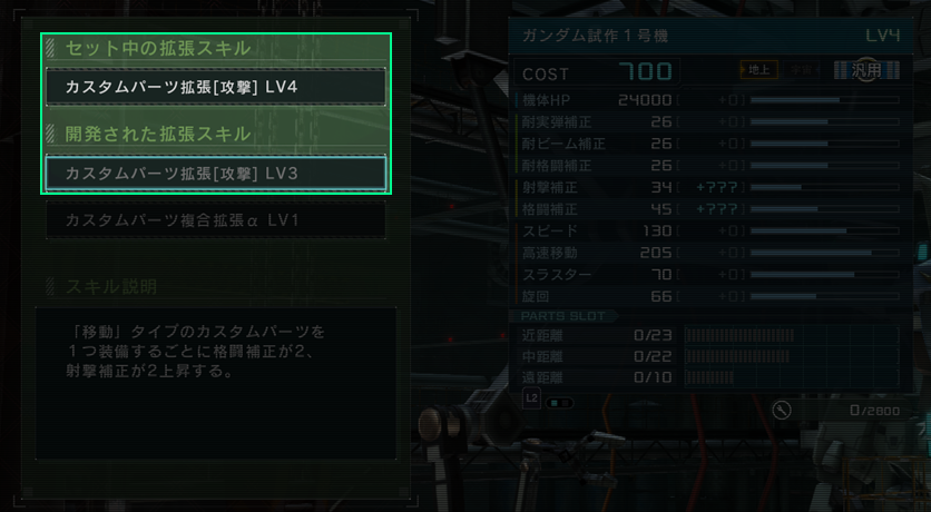 LV5の格闘補正の増加値と、LV4~5の射撃補正の増加値を上昇しました - カスタムパーツ拡張[スラスター]