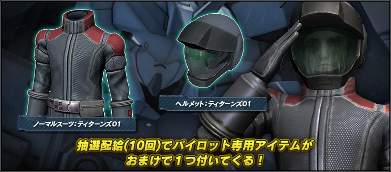 - ■抽選配給(10回)にはパイロット専用アイテムのおまけ付き!