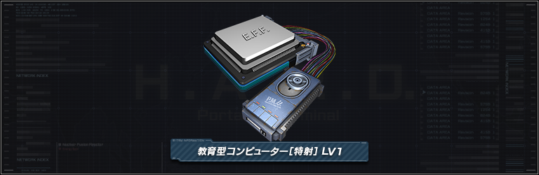 教育型コンピューター[特射] LV1 敵に与える射撃ダメージを4%増加し、射撃属性から受けるダメージを4%軽減する