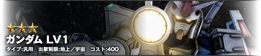 - ログイン3日目:ガンダム LV1 (汎用、地上/宇宙両用、コスト400)