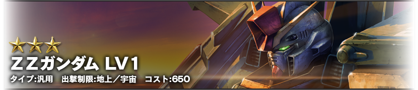 - ログイン5日目:ZZガンダム LV1 (汎用、地上/宇宙両用、コスト650)