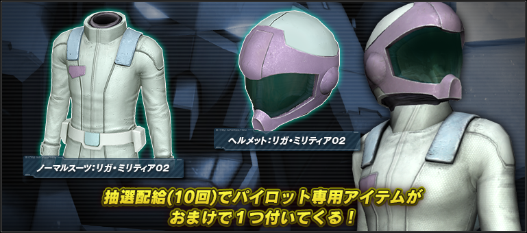 - ■抽選配給(10回)にはパイロット専用アイテムのおまけ付き!