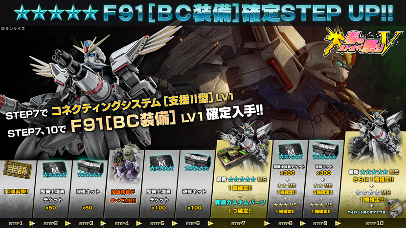 - ・STEP10(トークン30枚):「F91[BC装備] LV1」がさらに1機確定!!