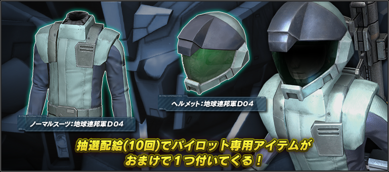 - ■抽選配給(10回)にはパイロット専用アイテムのおまけ付き!