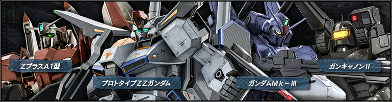 ・★★★ プロトタイプZZガンダム LV2 (強襲、地上/宇宙両用、コスト700) ・★★ ZプラスA1型 LV4 (強襲、地上専用、コスト750) ・★★ ガンダムMk-Ⅲ LV4 (汎用、地上/宇宙両用、コスト700) ・★ ガンキャノンⅡ LV4 (支援、地上/宇宙両用、コスト550) -