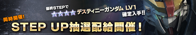 - ■デスティニーガンダム確定STEP UP抽選配給開催のお知らせ