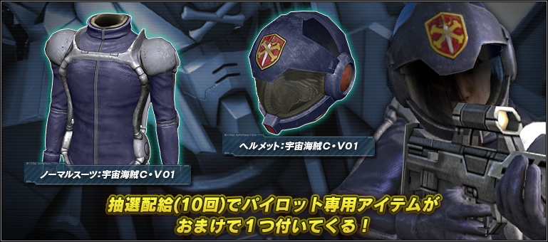 - ■抽選配給(10回)にはパイロット専用アイテムのおまけ付き!