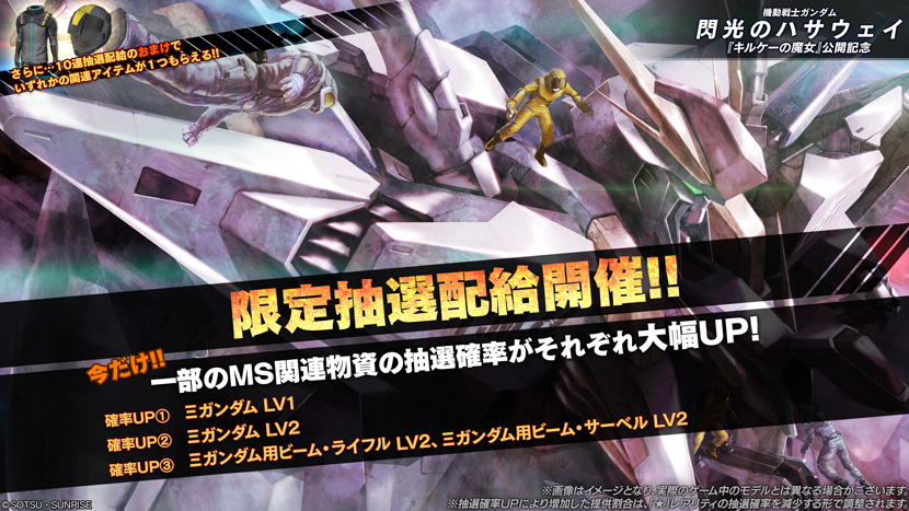 限定抽選配給では、「Ξガンダム」関連の抽選確率がアップしております。 - ■抽選確率アップの対象物資