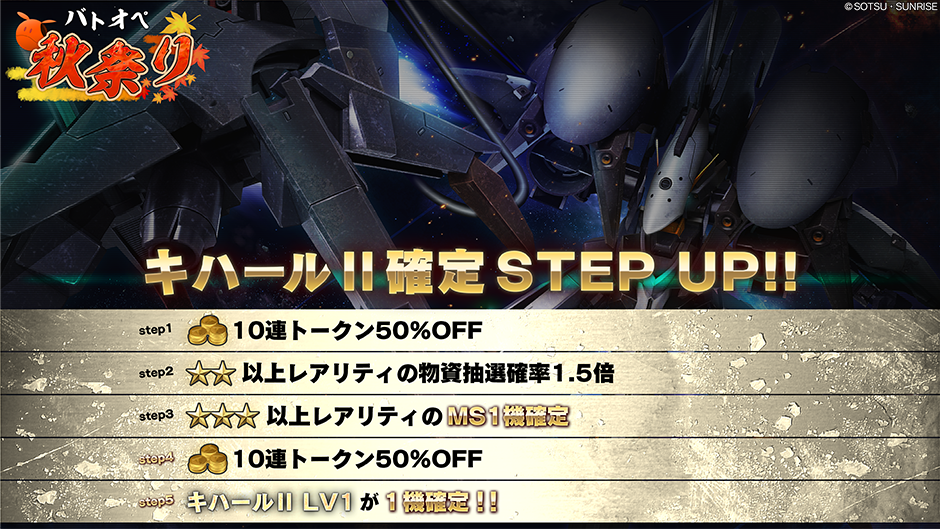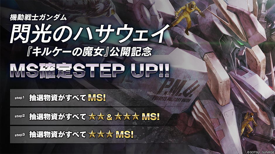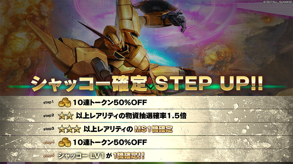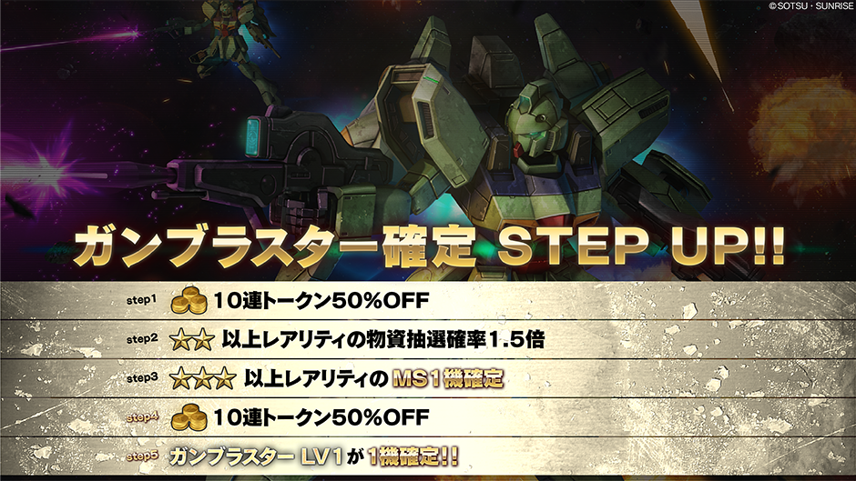 - ・STEP3(トークン30枚):★★★以上レアリティMSが1機確定!
