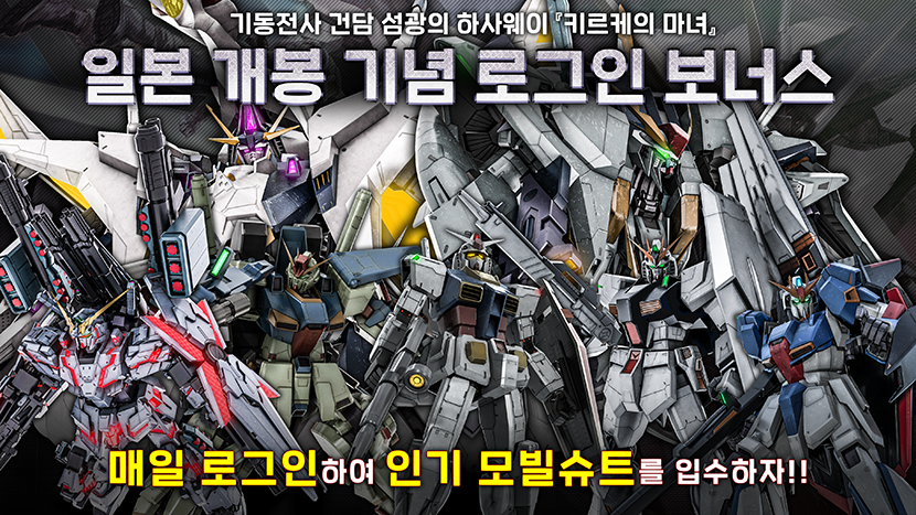- 1. 매일 로그인하여 인기 모빌슈트를 입수하자!