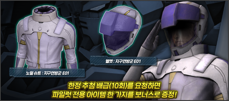 - ■한정 추첨 배급(10회)를 요청하면 파일럿 전용 아이템을 보너스로 증정!