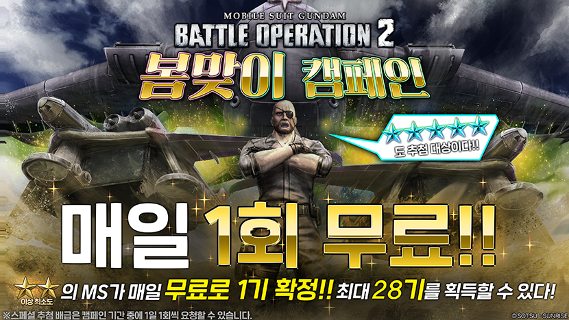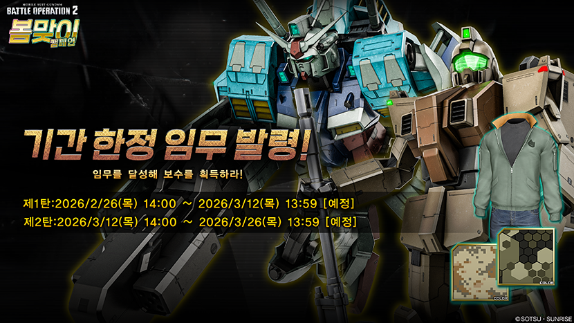 - 1. 기간 중에 로그인해 모빌슈트와 주무장을 입수하자!