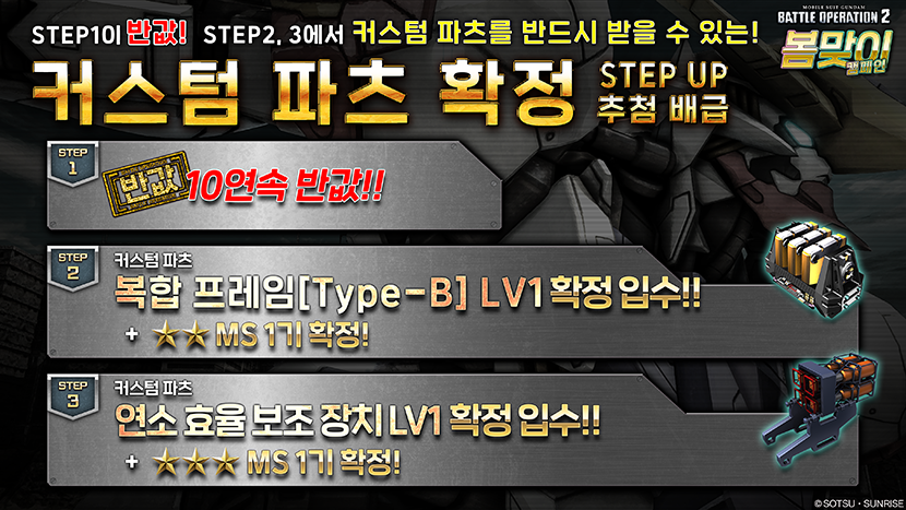 - ■커스텀 파츠 확정 STEP UP 추첨 배급 개최에 대한 알림