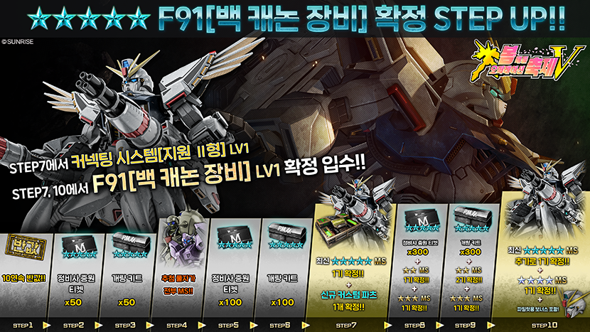 - ・STEP10(토큰 30개):「F91[백 캐논 장비] LV1」이 추가로 1기 확정!!