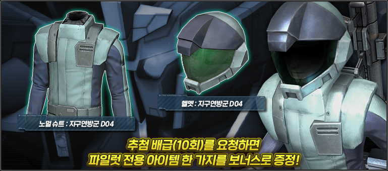 - ■추첨 배급(10회)를 요청하면 파일럿 전용 아이템을 보너스로 증정!
