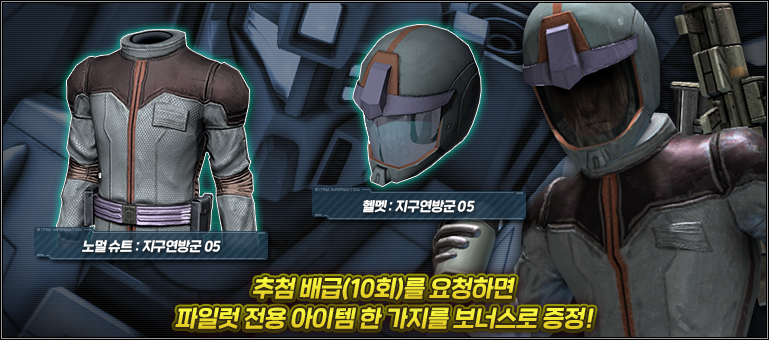 - ■추첨 배급(10회)를 요청하면 파일럿 전용 아이템을 보너스로 증정!