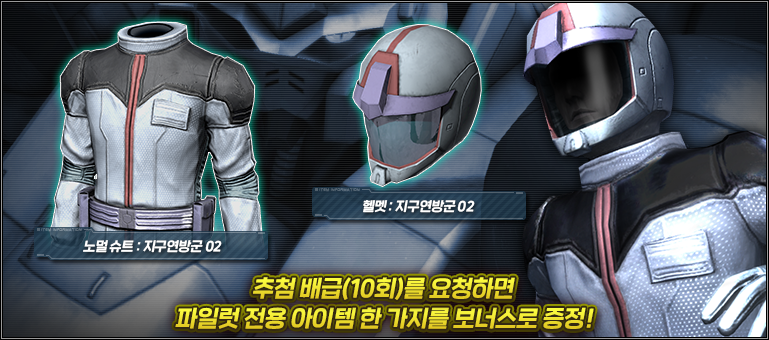 - ■추첨 배급(10회)를 요청하면 파일럿 전용 아이템을 보너스로 증정!