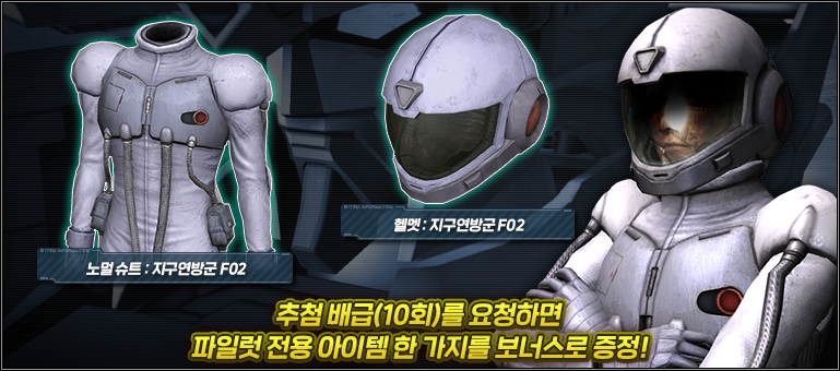 - ■한정 추첨 배급(10회)를 요청하면 파일럿 전용 아이템을 보너스로 증정!