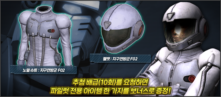 - ■추첨 배급(10회)를 요청하면 파일럿 전용 아이템을 보너스로 증정!
