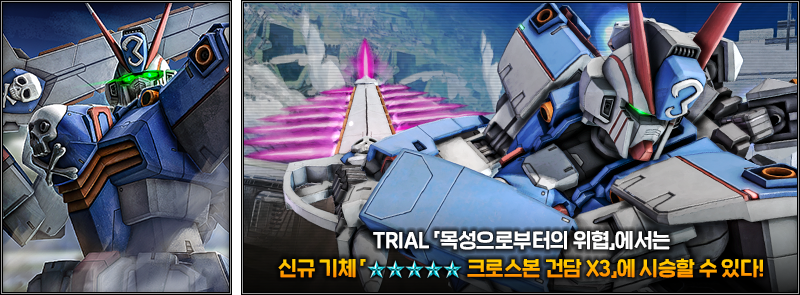 - ⇒ TRIAL 「목성으로부터의 위협」에서는 신규 기체 「크로스본 건담 X3」에 시승할 수 있습니다.
