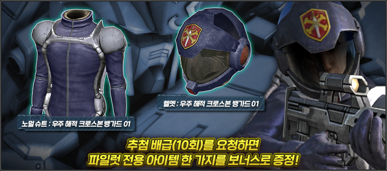 - ■추첨 배급(10회)를 요청하면 파일럿 전용 아이템을 보너스로 증정!